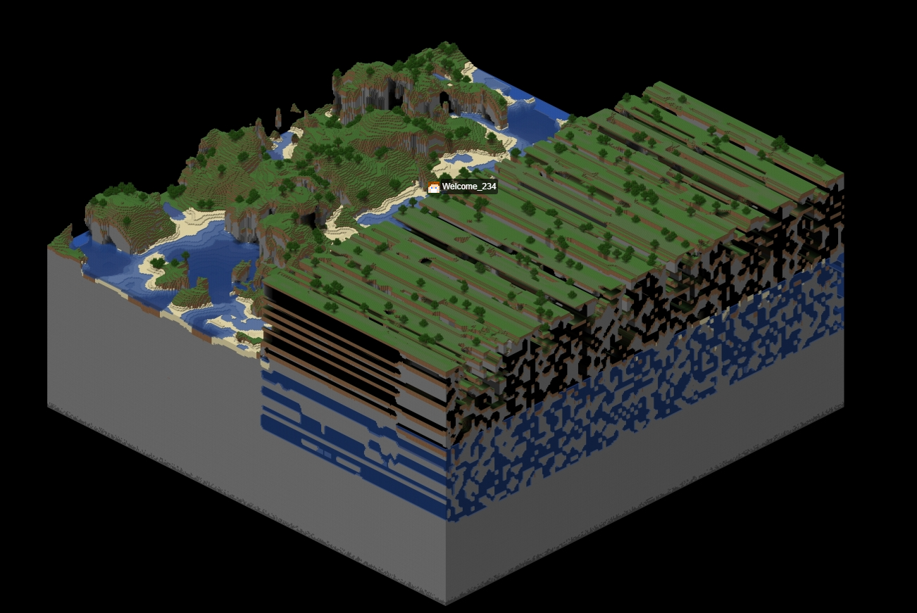 Rendered 3D Section of farlands as they appear from the March 27th build.