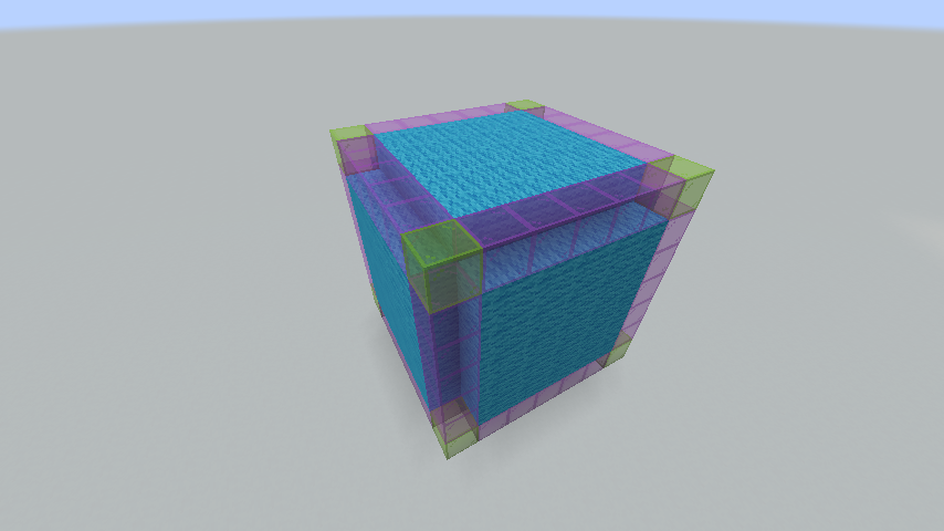 A rarely encountered type, this can only be encountered with three axes overflowing at once, which is effectively impossible in any version without mods. There are eight possible regions for this case, corresponding to the vertices of a cube.