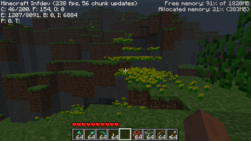 - The game progressively degrades in performance, becoming unbearably slow within minutes of loading a world. (This is caused by flowers that are generated in places where they break as soon as they appear, resulting in an increase in the number of entities. In rare cases, a flower or chunk will break in such a way to spawn insane amounts of entities, bringing the game to a grinding halt in seconds.)