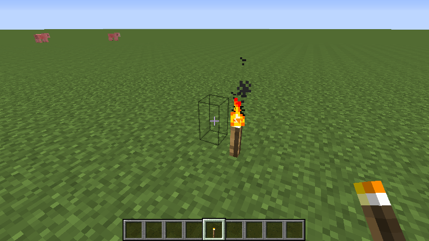 Torches with data values 8 and up appear to exhibit interesting behavior: 8, 13, 14 and 15 appeared and behaved as normal floor torches. However, 9, 10, 11 and 12 would have the wireframe hitboxes of wall torches, but would appear as floor torches, causing the hitbox to be detached from the torch.