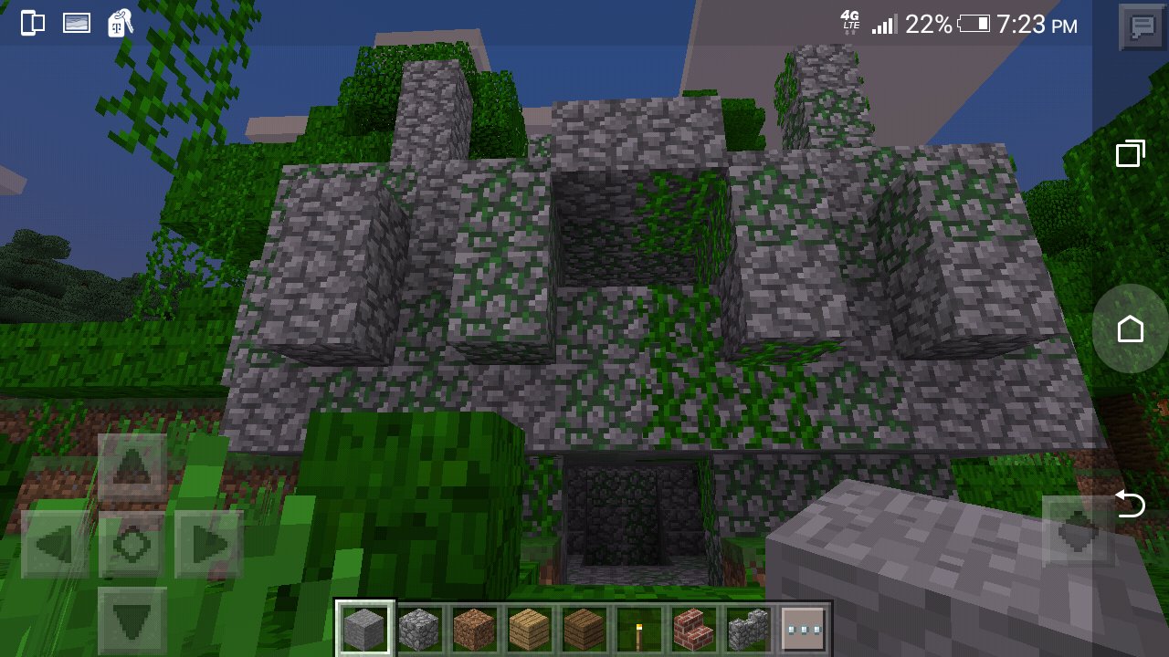 Jungle pyramids/temples consist of cobblestone, mossy cobblestone and vines. There are 3 floors.