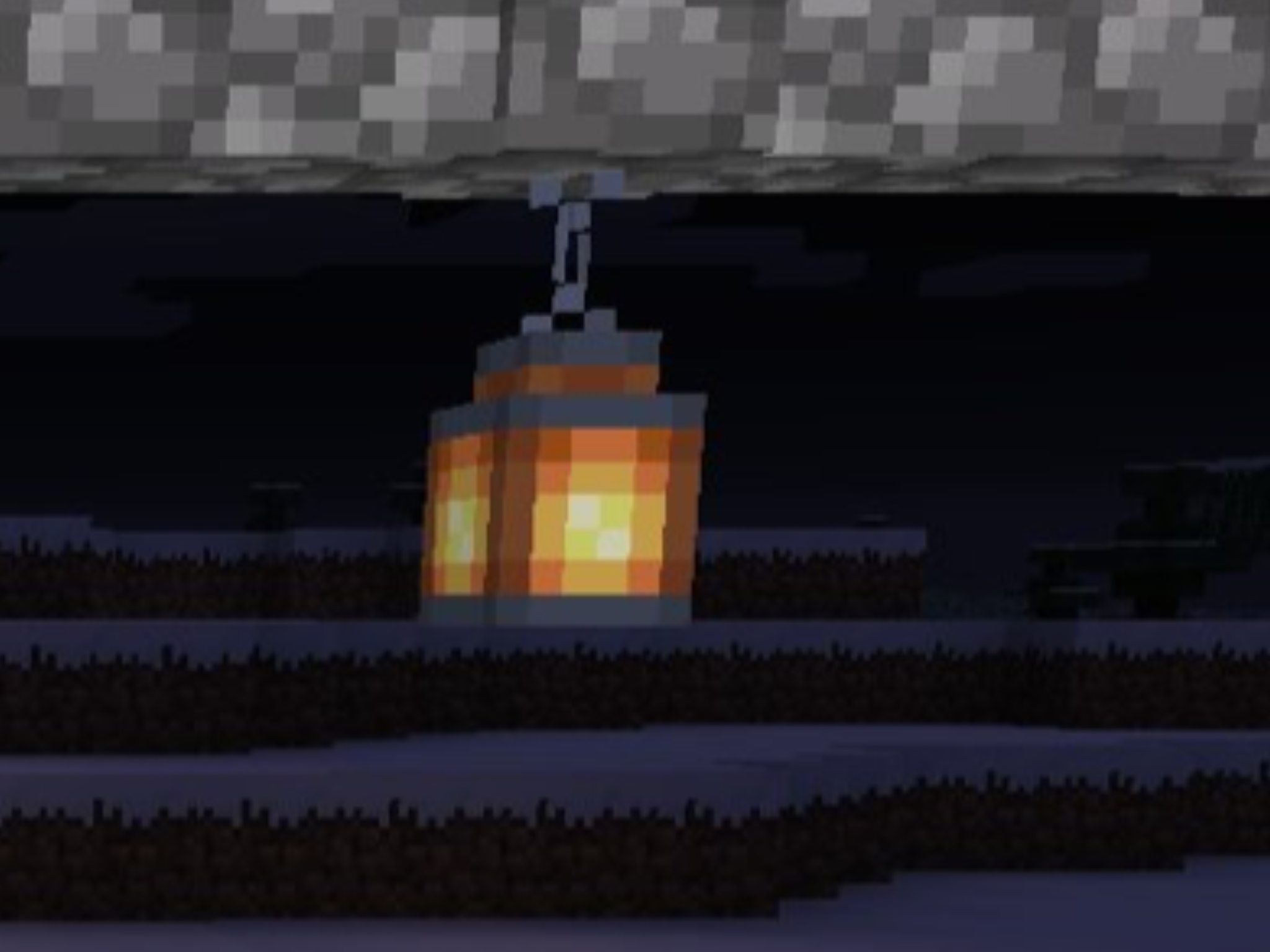 Regular lanterns can generate as lamps or lamp posts above farms and on some buildings in snowy tundra villages and in bastion remnants.