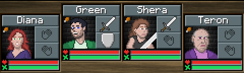- Right click to "use" an item (red apple on a character to feed them and sword to attack)