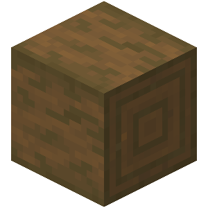 A log or stem[upcoming: JE 1.16 & BE 1.16] is a naturally occurring block found in trees or huge fungi[upcoming: JE 1.16 & BE 1.16], primarily used to create planks. It comes in eight types: oak, spruce, birch, jungle, acacia, dark oak, crimson and warped.