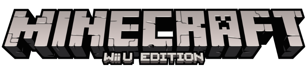 The base Minecraft game logo is 3D text containing "MINECRAFT", rotated slightly upward. It appears to be made of cracked stone in older designs, or stone with etch marks in newer designs, and the letter A has the face of a creeper as a hole. Several variations exist, also containing 3D text though not always with the stone material.