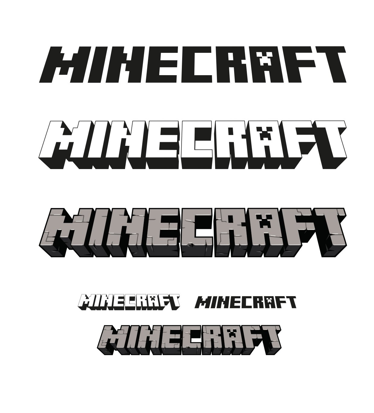 The Minecraft logo is used in its many forms to represent its franchise and the game.