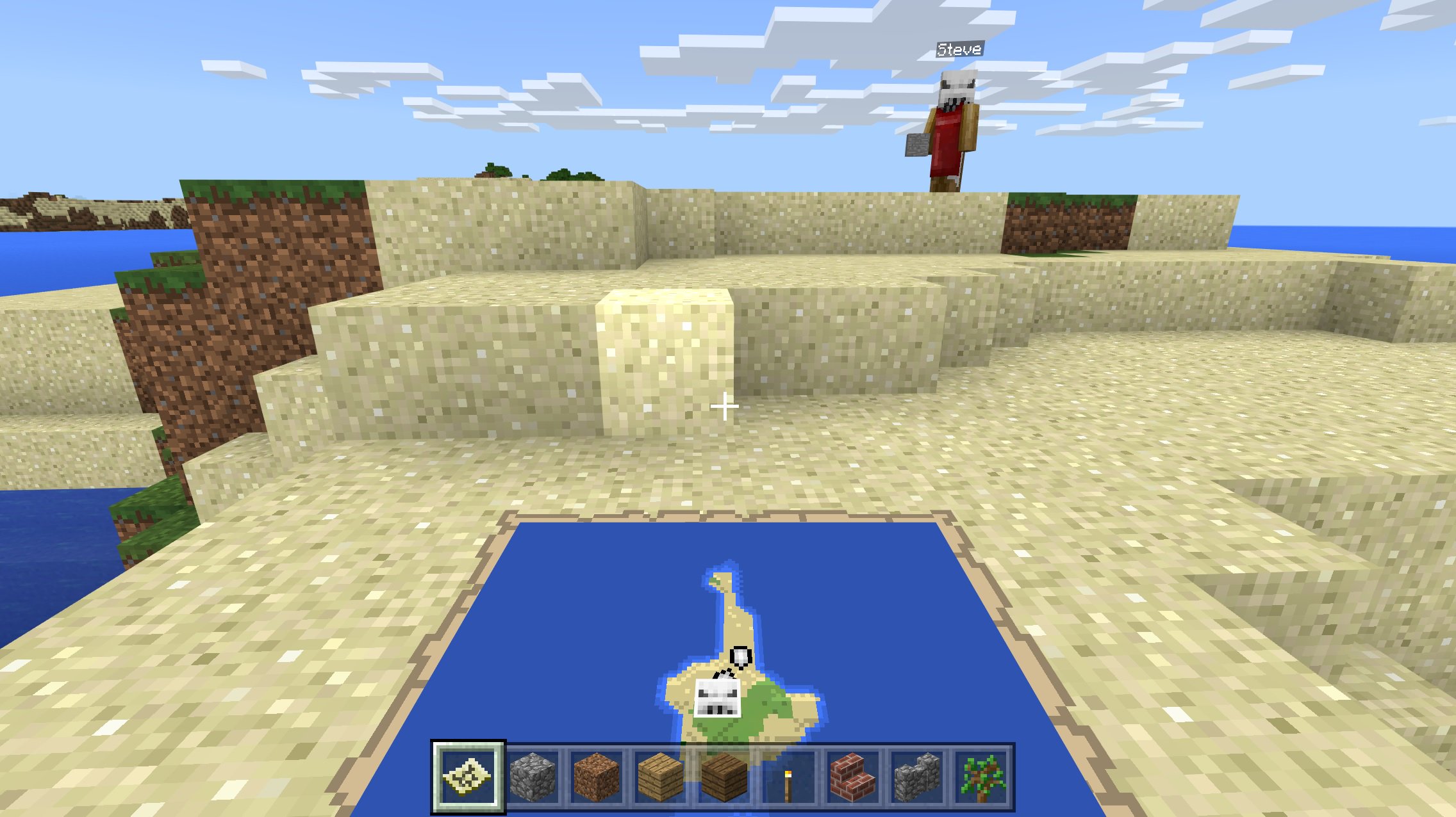 Maps display as a mini-map when held in the off-hand, or if the off-hand slot is occupied; the map is full-sized only when held in the dominant hand with both hands free.