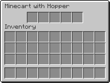 A minecart with hopper is a minecart with a hopper inside. Unlike a normal hopper, it pulls items from containers much more quickly, cannot push items into containers, can collect item entities through a single layer of solid blocks and is locked and unlocked via activator rails.