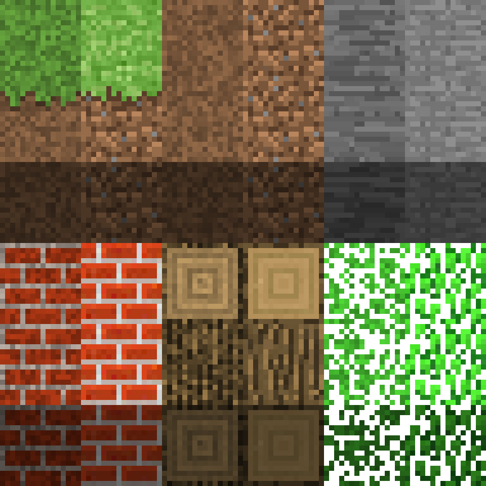 A comparison of Minecraft 4k's and Minecraft Classic's block textures.
