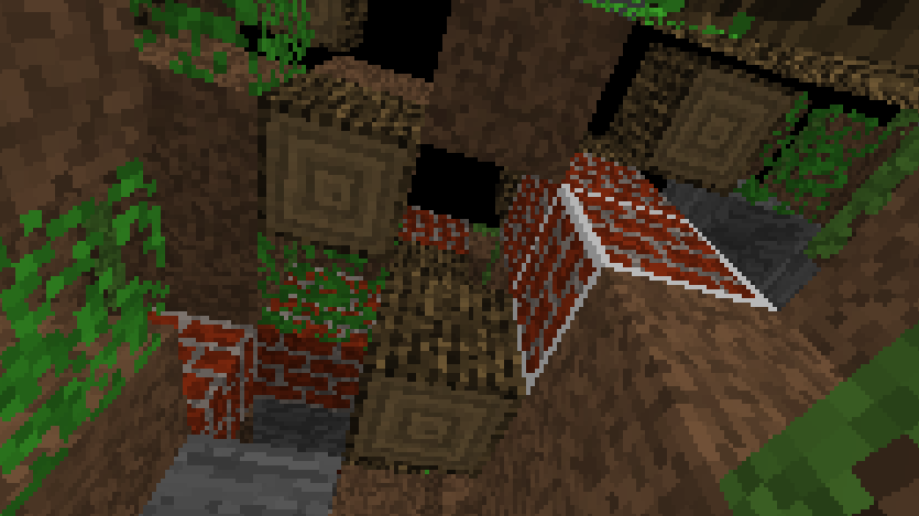 In the second version, block IDs are stored with four bits, resulting in 16 possible IDs. The majority of these are filled in by slightly differently textured dirt.