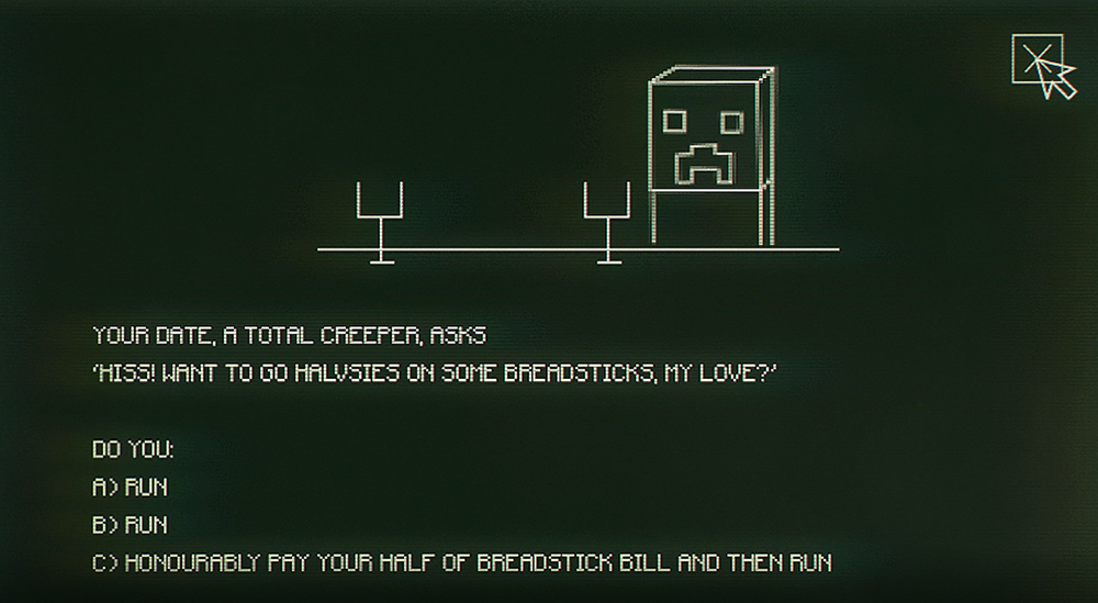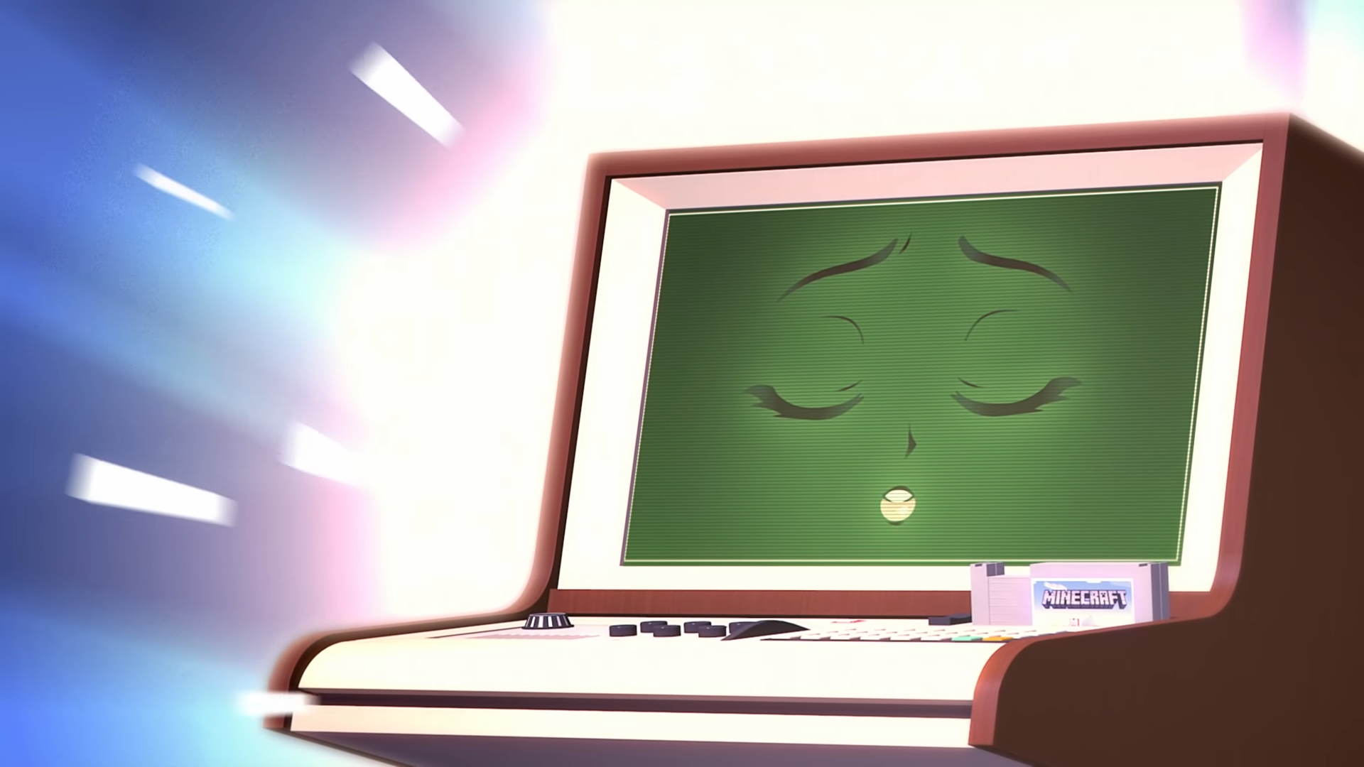 The Blockatron 500, a computer similar to MARILLA from the instructions of Lego Minecraft: The Dungeon. Has the appearance of a Commodore PET 40XX line, a 1970's home computer only able to display text.