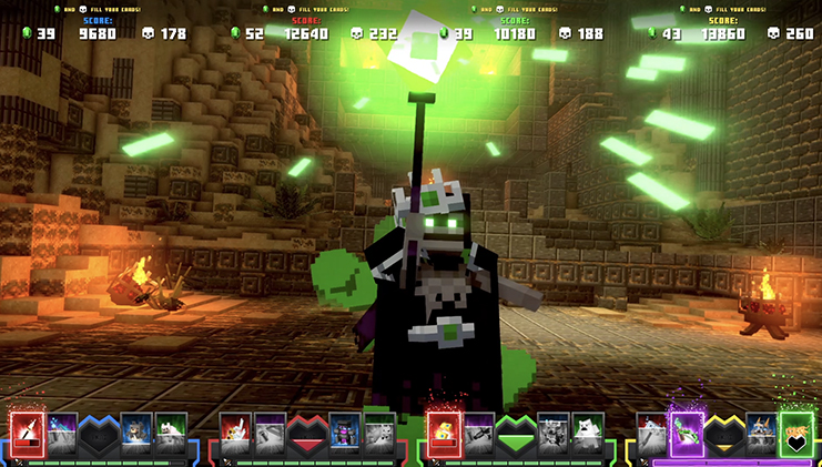 This game is similar to Minecraft Dungeons, in that players explore various locations and defeat various hostile mobs, but the game uses a side-on perspective instead of an isometric perspective as in the main game. The player will also be able to use physical collectible cards obtained after completing a game to select their gear as well as a pet and a skin.