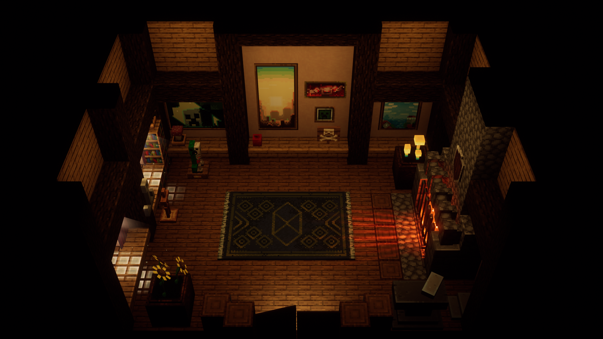 The House or Stable is a building in the back area of the camp. it is a small building with two rooms including a table, fireplace, dishes and a Redstone Monstrosity head on the main floor. On the second floor, there is another fireplace along with a few paintings, an anvil, a rug on the floor, an armor stand and a Creeper figure in the corner. The artifact and daily trial item chest that appears in a cutscene after the player completes a level also takes place in this room.