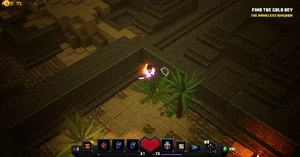 | Desert Temple | In the room in front of where the hero collects the Key Golem, there is a lever on the wall next to a bush and a palm tree. This lever opens a wall. The seventh rune is at the end of the platform. |