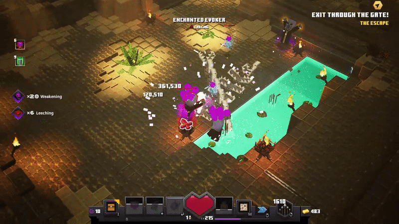 The evoker has two attacks. It starts by summoning a stream of fangs then calls in a group of vexes. While not attacking, it attempts to stay a certain distance from the players by running.