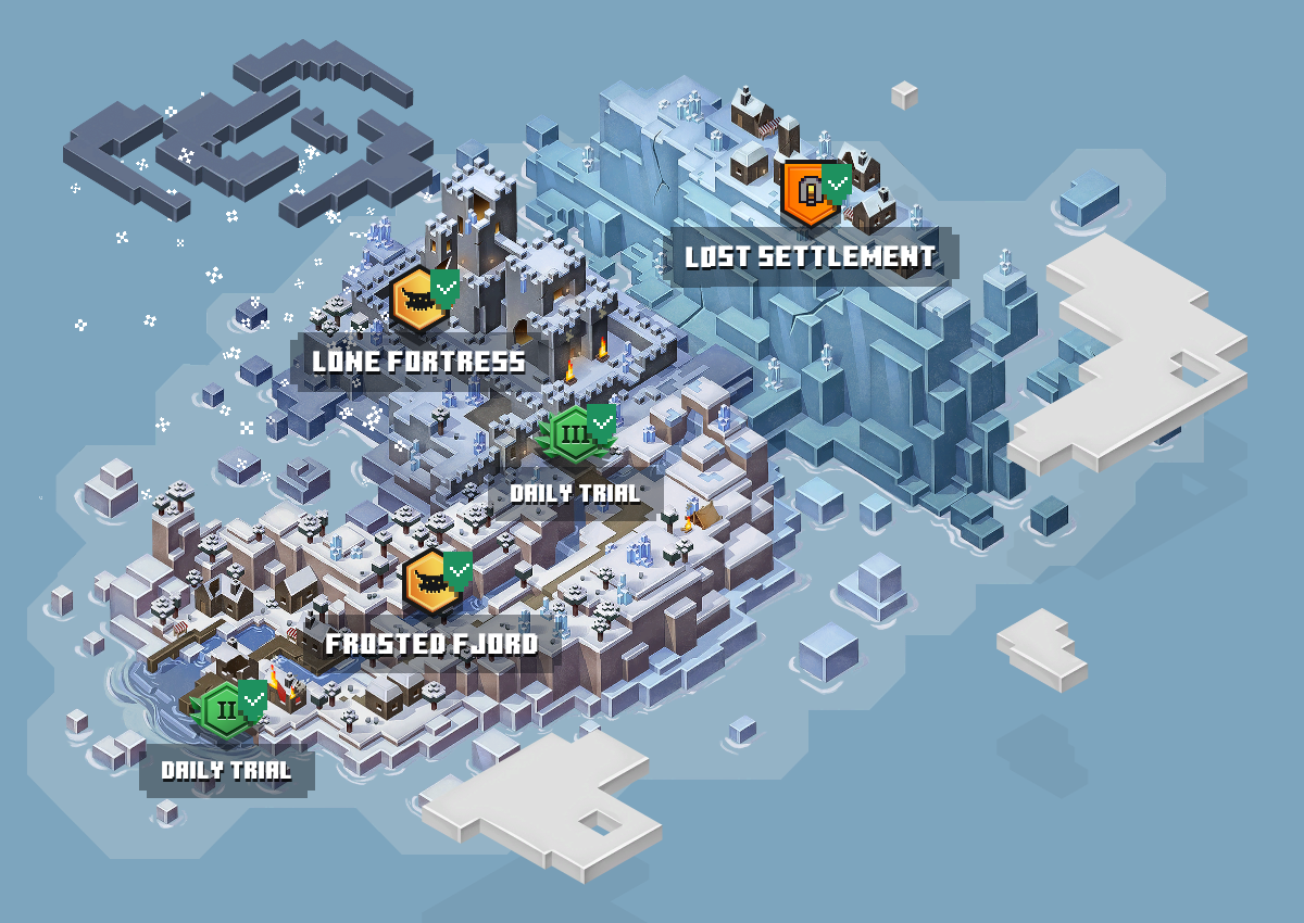 The Island Realms is the term used to refer to the three DLC islands that are located far away from the Mainland. These islands were originally peaceful, being located far away from the unrest of the Overworld. But this changed after the Orb of Dominance was destroyed, as the remaining shards from the Orb landed on these offshore islands and brought with it its corruption. Soon, the islands fell to the Orb's corruption with many creatures being created in its quest to regain its power. Both islands are now heavily corrupted by the shards and it is the player's job to bring it to an end. One daily trial will appear on each island along with the other levels.