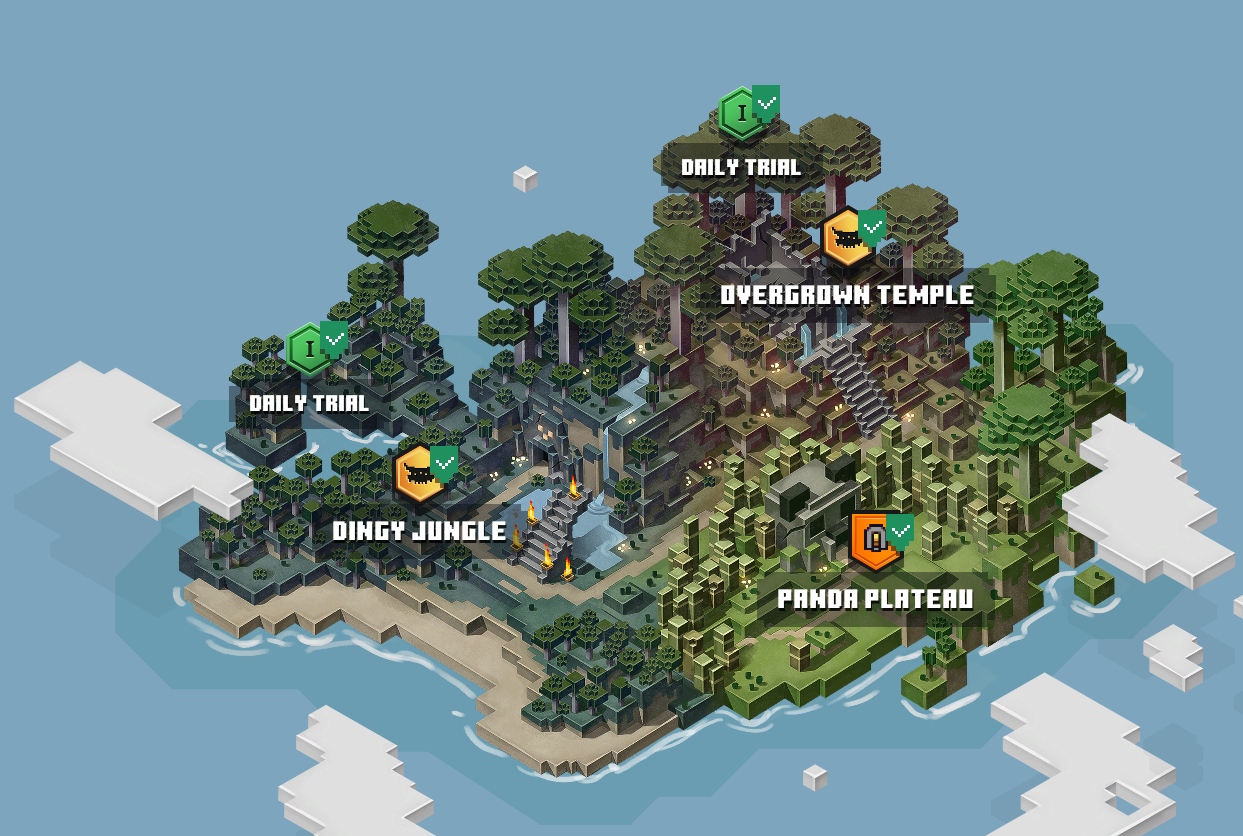 The first shard fell on an island that was a lush Jungle filled with many plants and creatures and features a stunning lively landscape with lots of Jungle trees and bamboo. When the Orb shard reached the island, there were no victims to fall for its trap, so it began creating its own mobs using the various foliage of the Jungle. At first it was only in the form of Quick Growing Vines and Poison-Quill Vines. But as the shard began to build up more power, it created a monster to rule the Jungle and spread its powers, the Jungle Abomination. Using the Abomination to its advantage, it began creating tougher and more advanced mobs like the Leapleaf and the Whisperer. This island is known as the Jungle Awakens island.