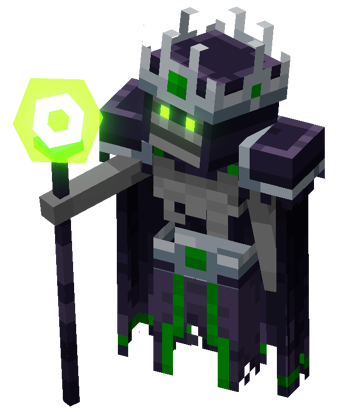 The Nameless One, also known as the Necromancer, is a boss variant of the necromancer in Minecraft Dungeons. It wields a staff that allows it to summon the Undead. It is found in the Desert Temple.