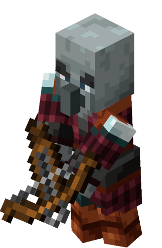 Pillagers are armed with crossbows and are usually slow-moving, preferring to shoot the player from a distance. However, it deals great pierce damage with a single shot. As similar to skeletons, spiders or geomancers do, pillagers move away to keep distance from the player.