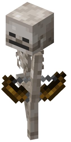 Skeletons harm the player by shooting arrows with bows from a distance. They flee when the player gets near them.