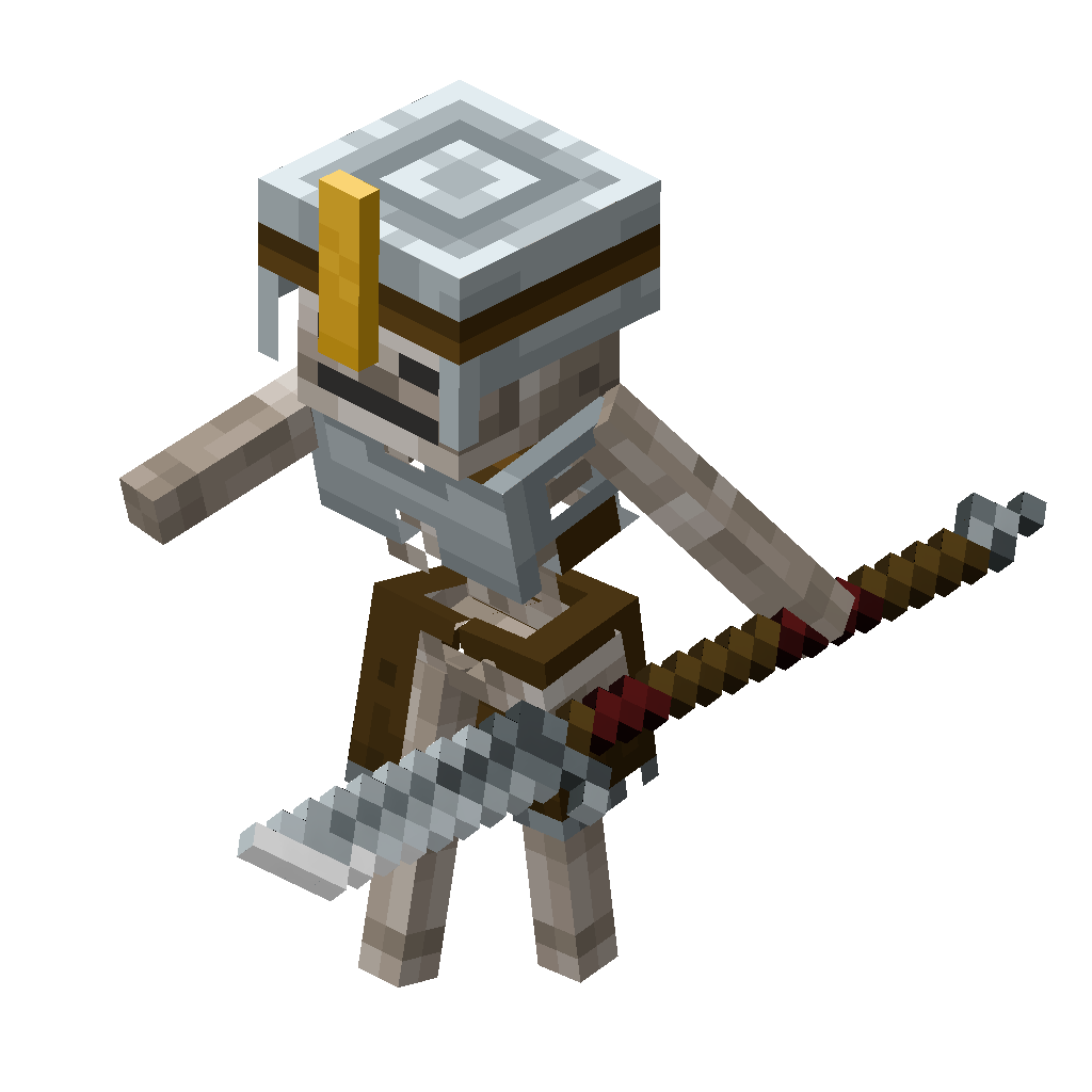 When close enough, it stabs the target with its glaive (which makes skeletons vanguard melee attackers). The shield serves as extra health as it absorbs the first attack. The skeleton vanguard has a longer attack reach than most other mobs, so it can hit targets from farther away. Their long attack reach also allows them to take down allies more easily, such as wolves, who can't touch them because of this glaive.