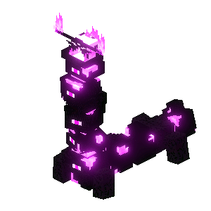 The Vengeful Heart of Ender is much larger and more monstrous than the Heart of Ender, now possessing eyes throughout most of its body. It has four small legs, a long neck, and a head possessing two long horns. The tips of the horns are lit with purple flames, along with its jaw. It also possesses an extra eye and jagged teeth.