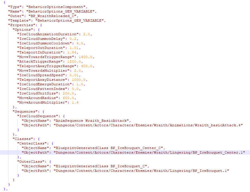Screenshot from BP_WraithReloaded.json and BP_IceBouquet_Center.json file. Alan (talk) 12:19, 29 November 2022 (UTC)