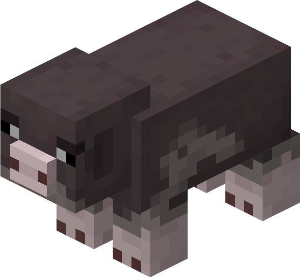 The Pink Footed Pig is a dark-colored variant of the pig with pink feet found exclusively in Minecraft Earth.
