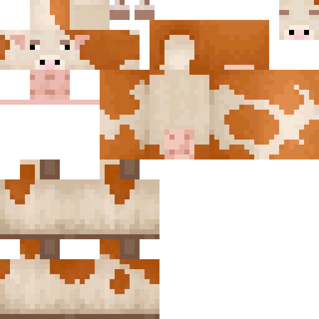 The pinto cow was a cream and brown-colored variant of the cow found only in Minecraft Earth.