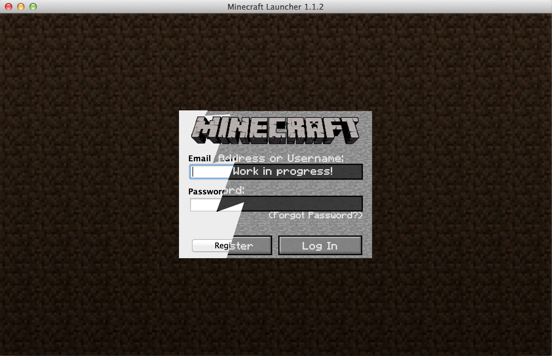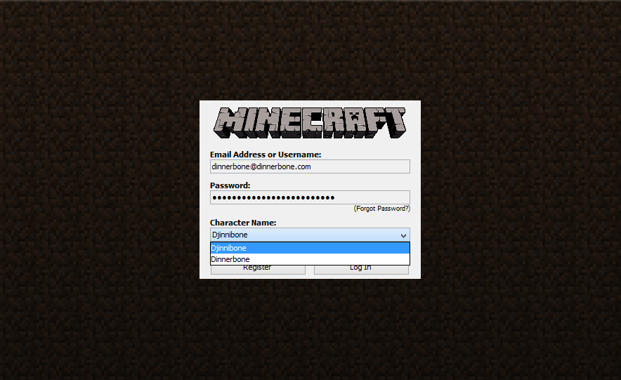 Dinnerbone logging into the launcher.