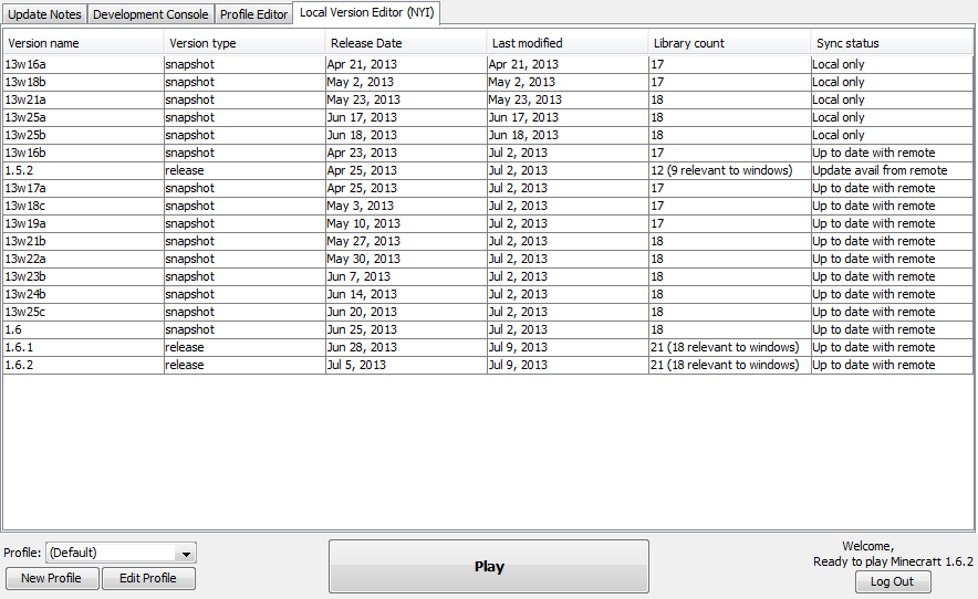 Game version. Includes access to outdated development builds and previous releases. Older/custom versions can also be added manually.[1]