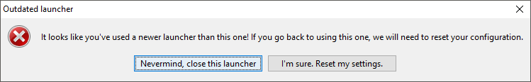 Error message that is displayed if an old launcher is opened after using the 2.0 launcher