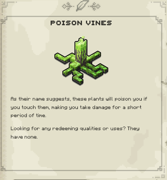 Poison vines are obstacles that damage entities of Minecraft Legends.