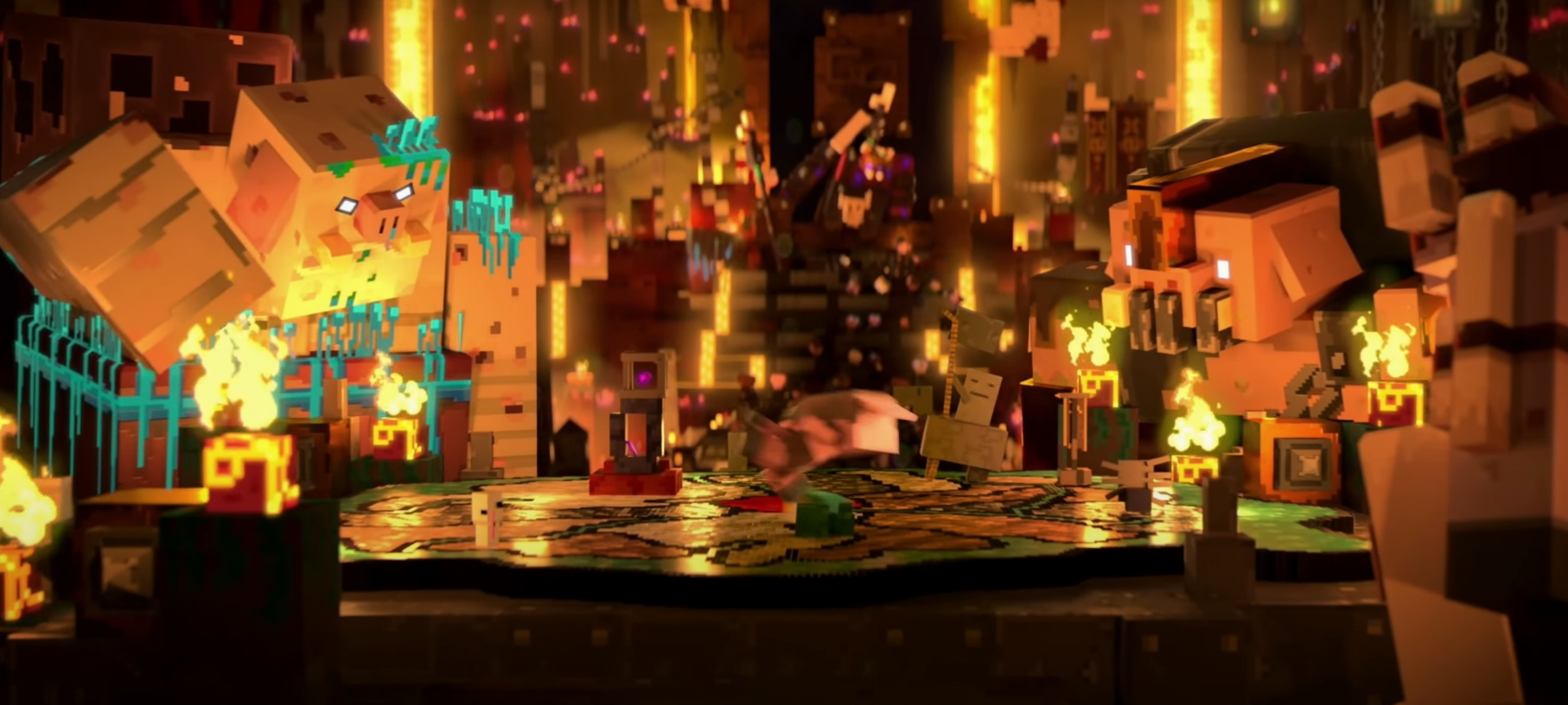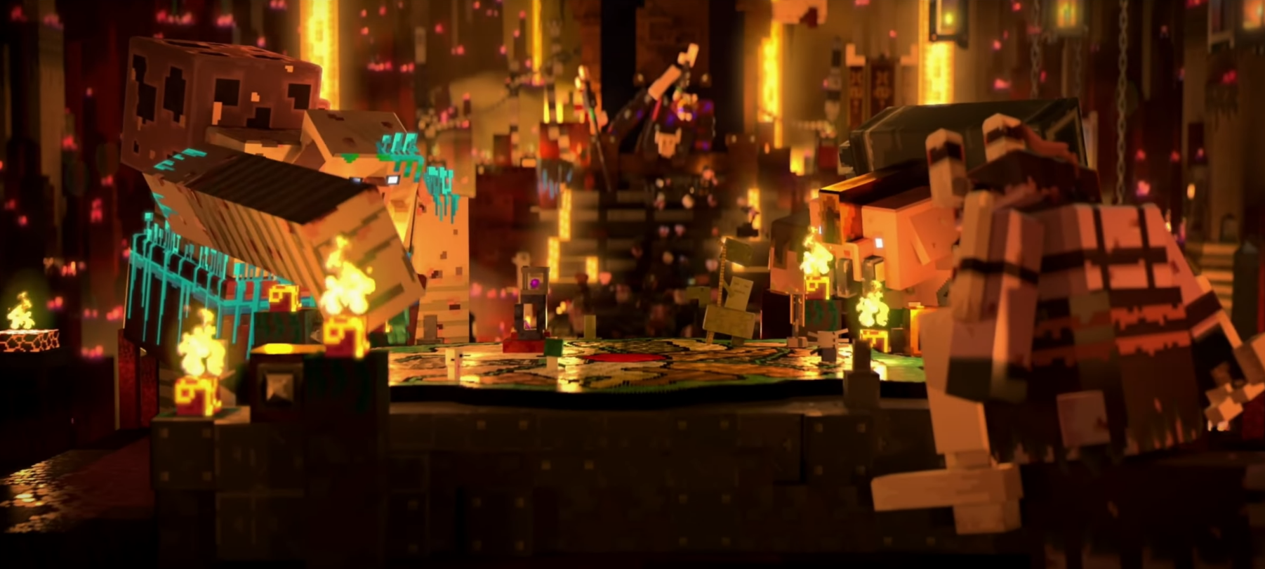 After the Hero defeats multiple Piglin Outposts we cut to the Nether where see the Devourer and the Unbreakable watches the Great Hog choking the Beast then he throws the Beast towards a wall. The Great Gog afterwards calls upon the Seer and the Great Hog points towards a place in the map, the Seer then asks four piglins to bring it a beacon, after the piglins bring the beacon to the Seer it corrupts it with the Orb of Dominance. The Seer tells the three piglins to place the corrupted beacon on top of the nether portal within the Night Beacon. After the Hero successfully destroys the night beacon a piglin comes through the nether portal and rushed towards the Great Hog and his generals to tell them the night beacon was destroyed. After telling them it was destroyed the Great Hog gets angry and with his generals proceeds to catch the piglin and presumably kills it. The Devourer and the other generals return to their respective horde bases.