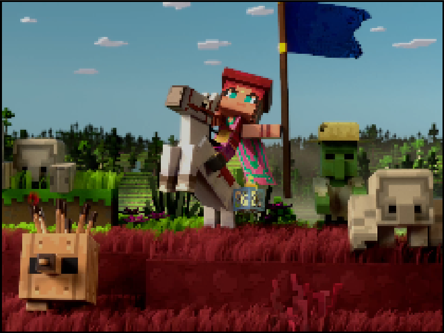 Jeb uses his developer powers to teleport all players on the server to a stage where he would do a presentation with Hannah about Minecraft Legends. The slideshow is exploded by Piglins just as Jeb is about to reveal what he considered to be secrets to the game.
