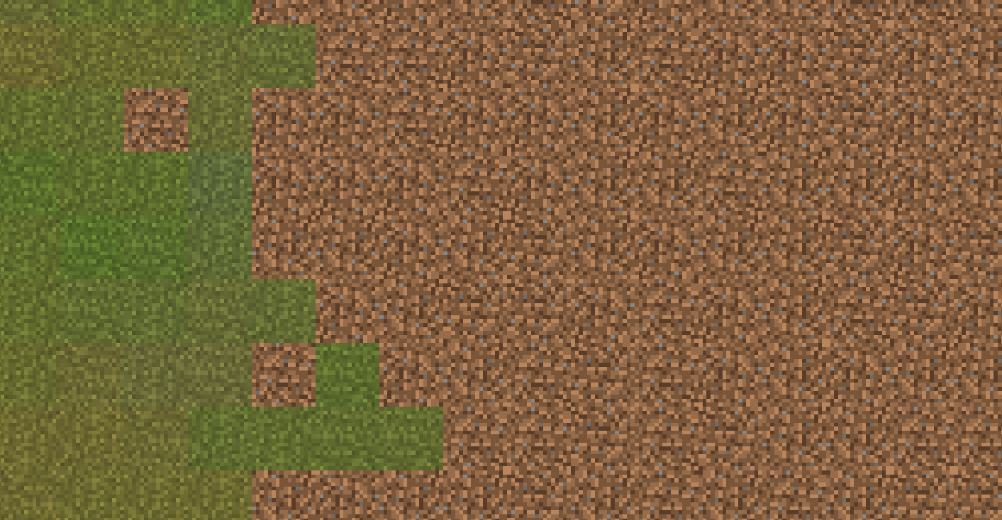 Grass slowly spreading rightwards over dirt blocks, as the screen gradually scrolls to the right. |
