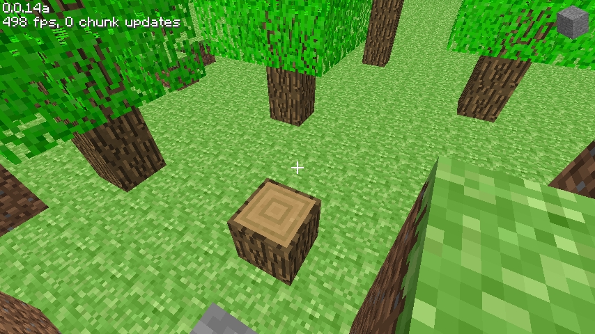 0.0.14a is our next stop, with some more integral additions, such as trees, ores, and gravity-affected blocks. Once more, all videos and screenshots from 0.0.14a base are from Notch himself and screenshots from other parties have not been found.