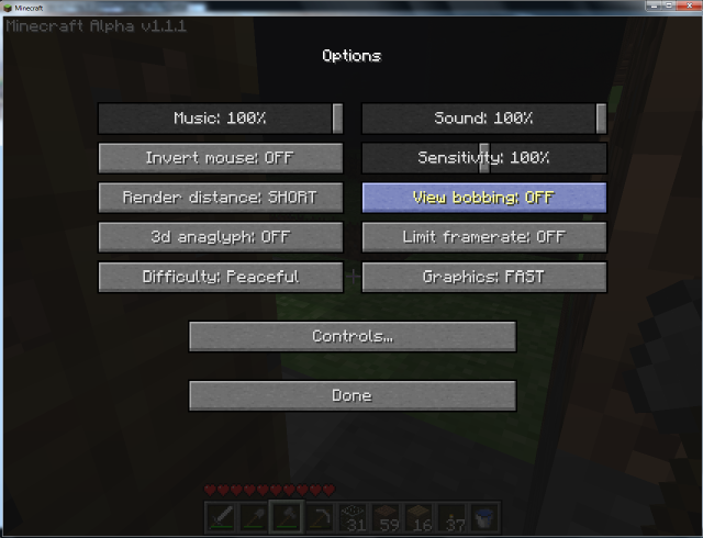 The following is perhaps the most elusive and wanted Minecraft versions in archiving history. The only Seecret Saturday version, and the version that brought to the game sneaking, fishing rods and an assortment of new and retouched paintings, Alpha v1.1.1 has eluded archival for a frankly outrageous amount of time. Originally believed to have been out for the entire free weekend in September of 2010, it is now known to only have been out for a matter of hours, but still long enough to expect it to have been archived. Not to mention the entirely too many broken download links that would have otherwise led to this version being safely tucked among its brethren where it belongs. The Achilles heel for this version was its infamous gray screen bug, where brightness settings would change all colors on-screen to a uniform gray. This is the subject of the currently only archived video of this version. Also attached to this version is the infamous calm4.ogg, the only composition from the Minecraft soundtrack to be directly composed by Notch himself.
