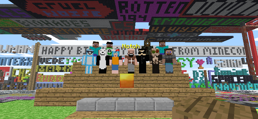 MineCon 2010 was a gathering on Minecraft fans on a Minecraft Classic Server.[4] There was a Spleef Tournament, Building Competition, and an Obstacle Course Race. (There was also a Griefing Competition, but it was cancelled.) There was also a Signature Wall that 167 people including Notch signed.