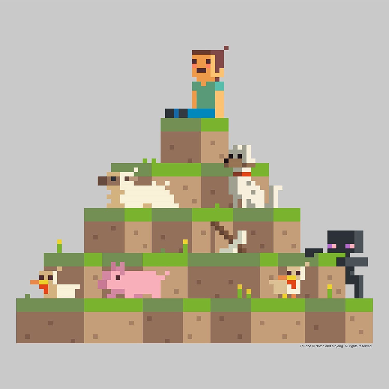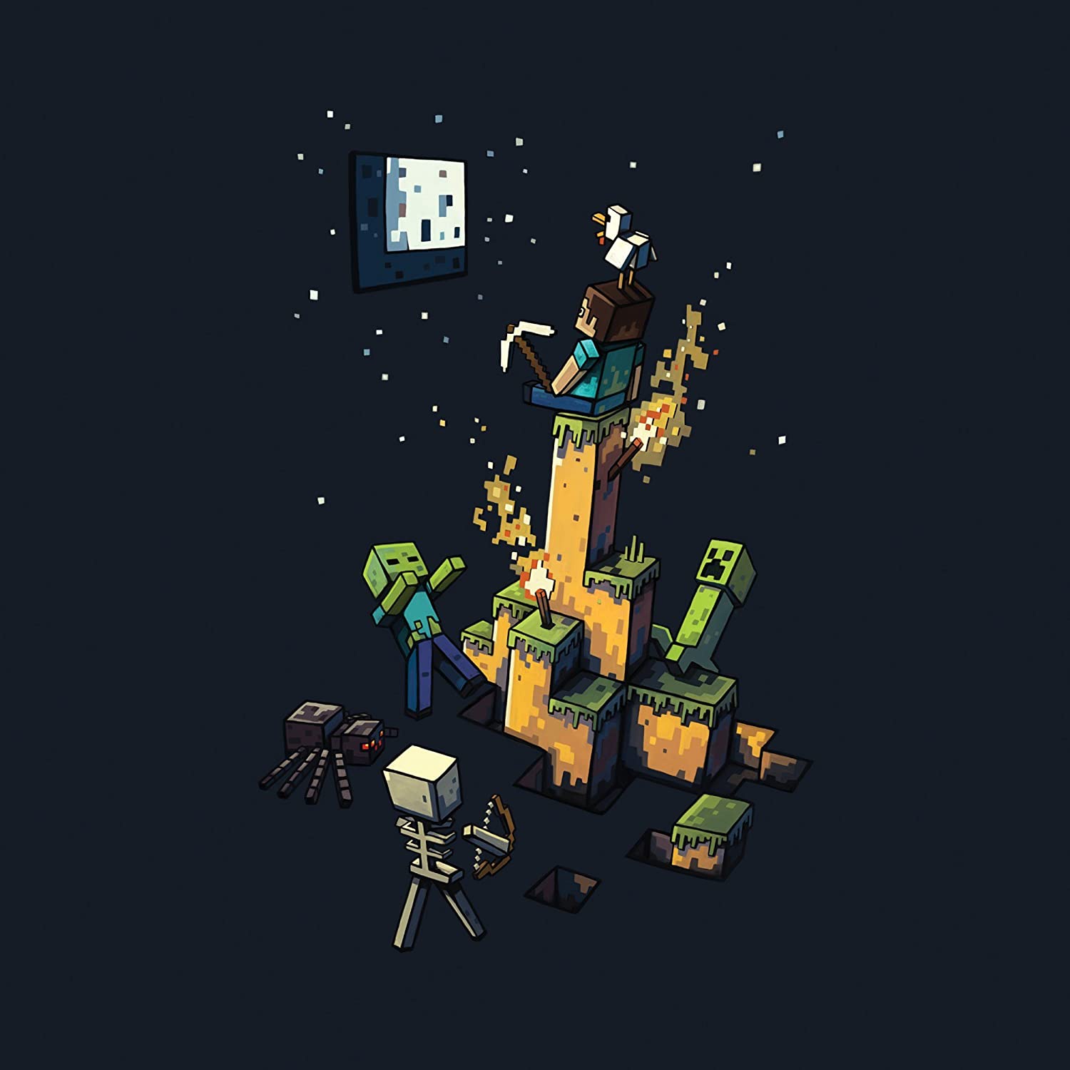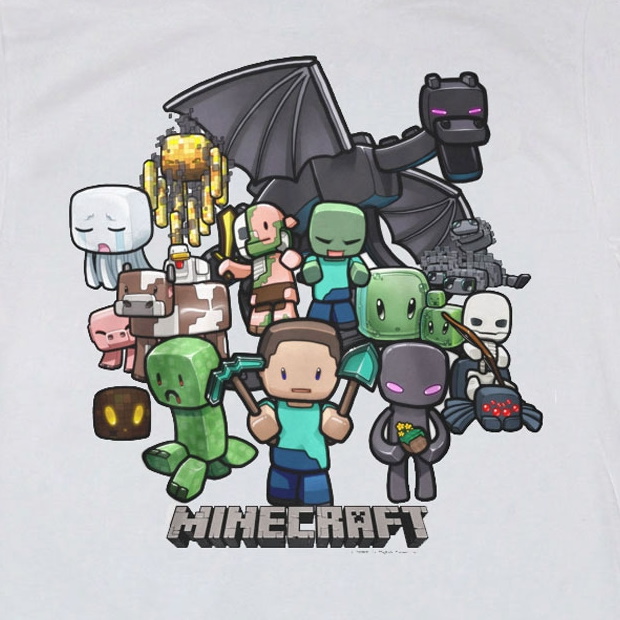 Official T-shirt artwork featuring Steve and mobs. Made by Capy.