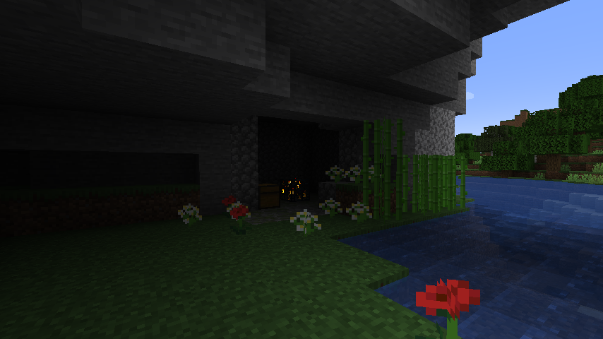 A monster room intersecting with a mineshaft at bedrock level.
