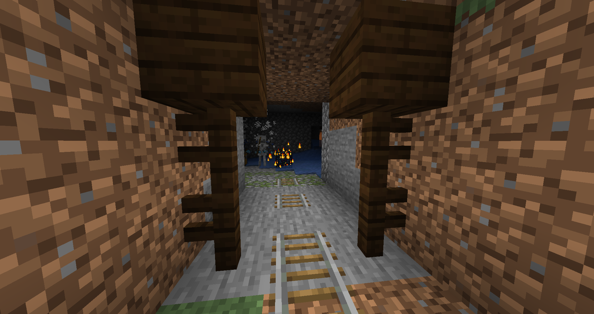 A monster room intersecting with an abandoned mineshaft.