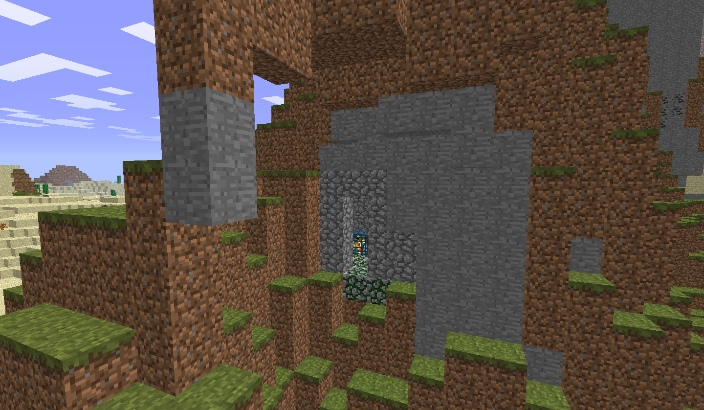 If the location passes, air and cobblestone are placed, then 3 attempts are made to generate each of two chests. To generate a chest, the chosen block must be empty and must have a solid block on exactly one of its four sides. The monster spawner is placed at the center of the monster room.