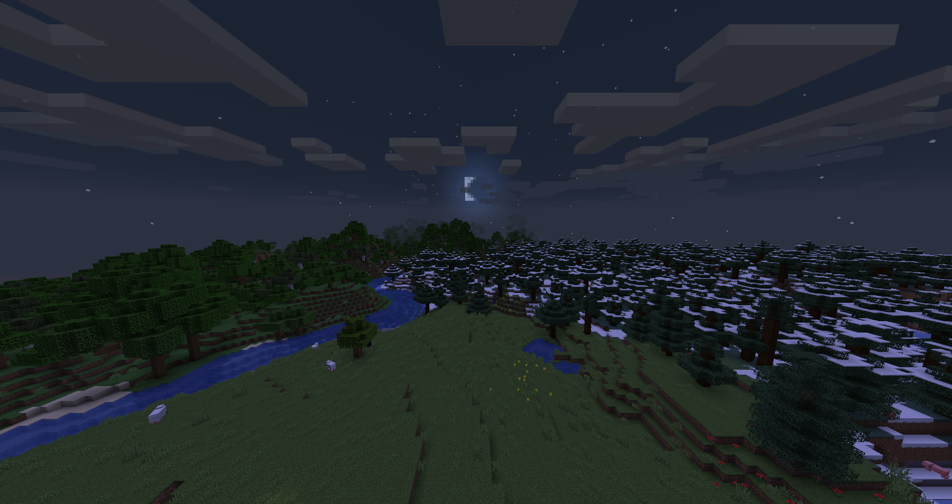 During the night, the moon illuminates the surface in the same manner as the sun; however, light levels fall to a minimum of four. This allows hostile mobs such as zombies and skeletons to spawn.