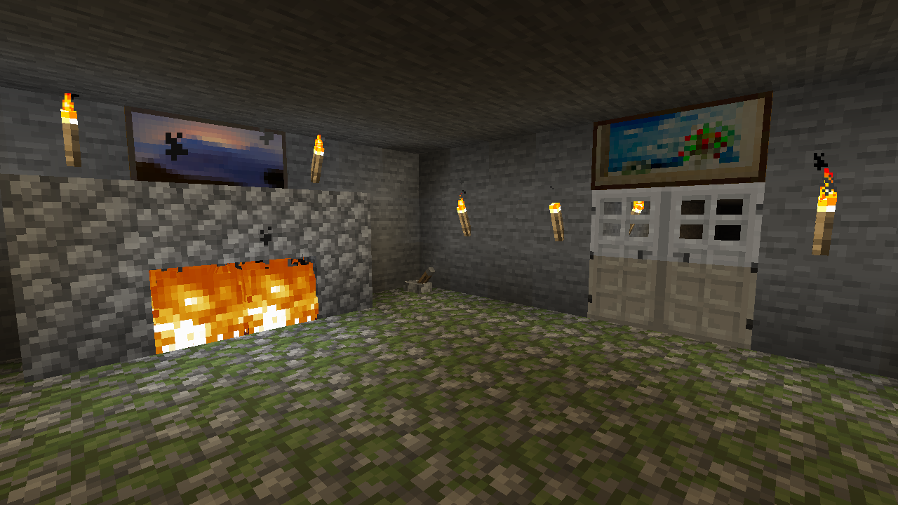 The floor of this shelter has been replaced with moss stone from a dungeon, for aesthetic purposes.