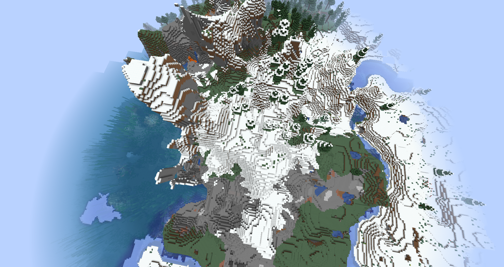 Large mountains added in Caves & Cliffs, including 5 new mountain biomes.