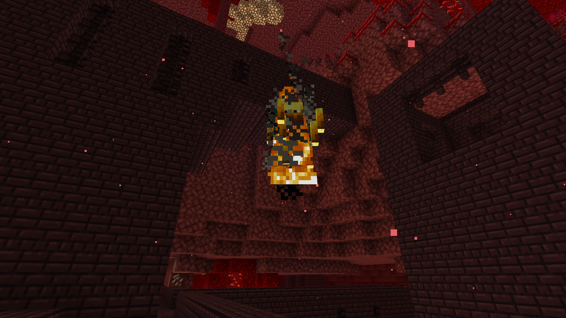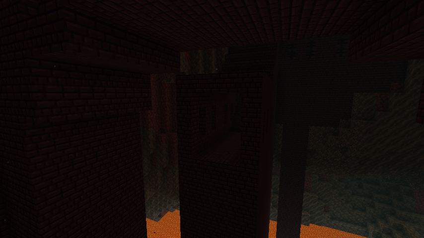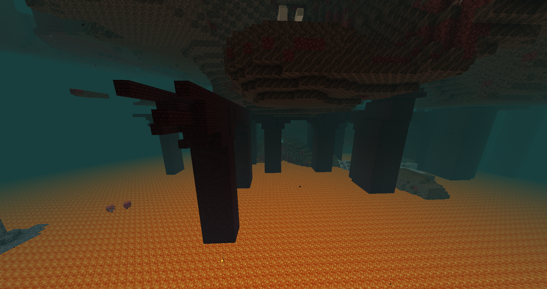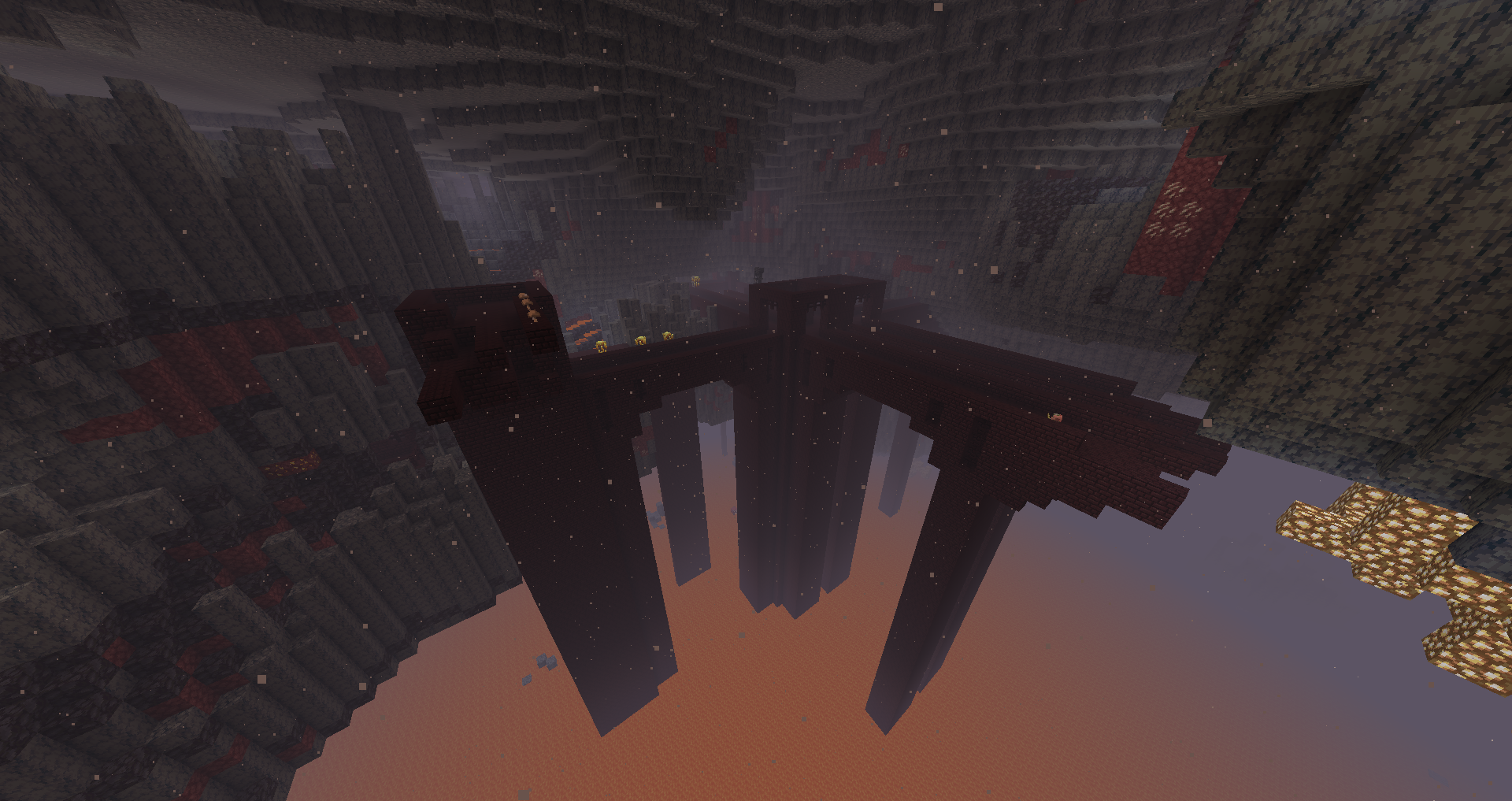 Nether fortresses are large complexes composed of nether bricks that are supported by pillars that tower high above the lava seas.