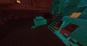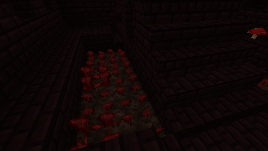 - Up to two stairways leading up to a garden of soul sand and nether wart at the base of the stairs, a corridor leading away from the upper landing and a corridor behind the stairs. If the room is generated embedded in netherrack, only one block above the landing is cleared.