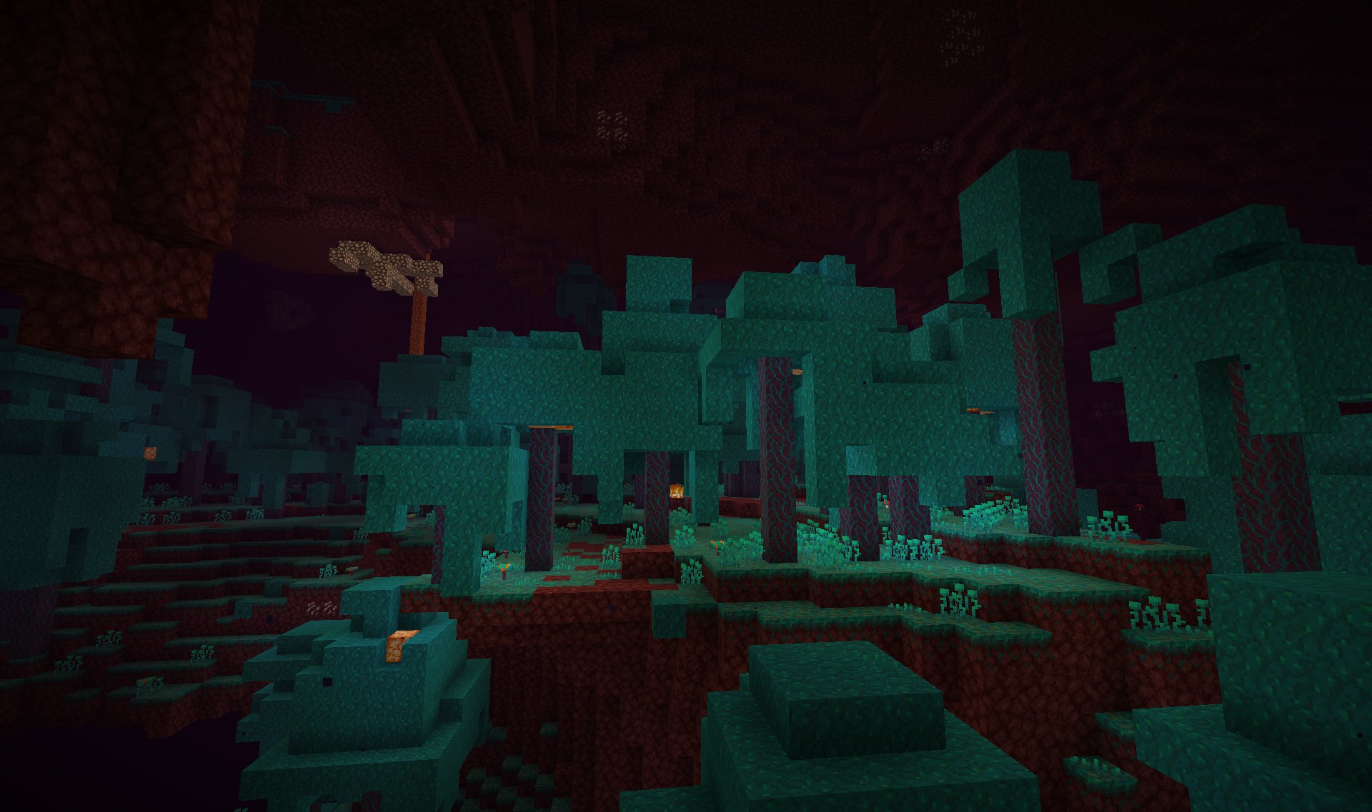 - Generates in warped forests. Can be obtained by applying bone meal to warped nylium, and can be grown upward.