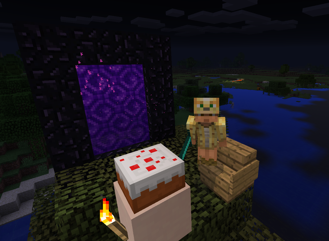 Darngeek standing in front of a nether portal.